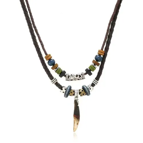 Hand-woven boho double-layer leather rope necklace Adjustable ethnic sweater chain Ghana's hot-selling retro bestie accessories